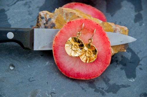 gold paper flower dangle earrings